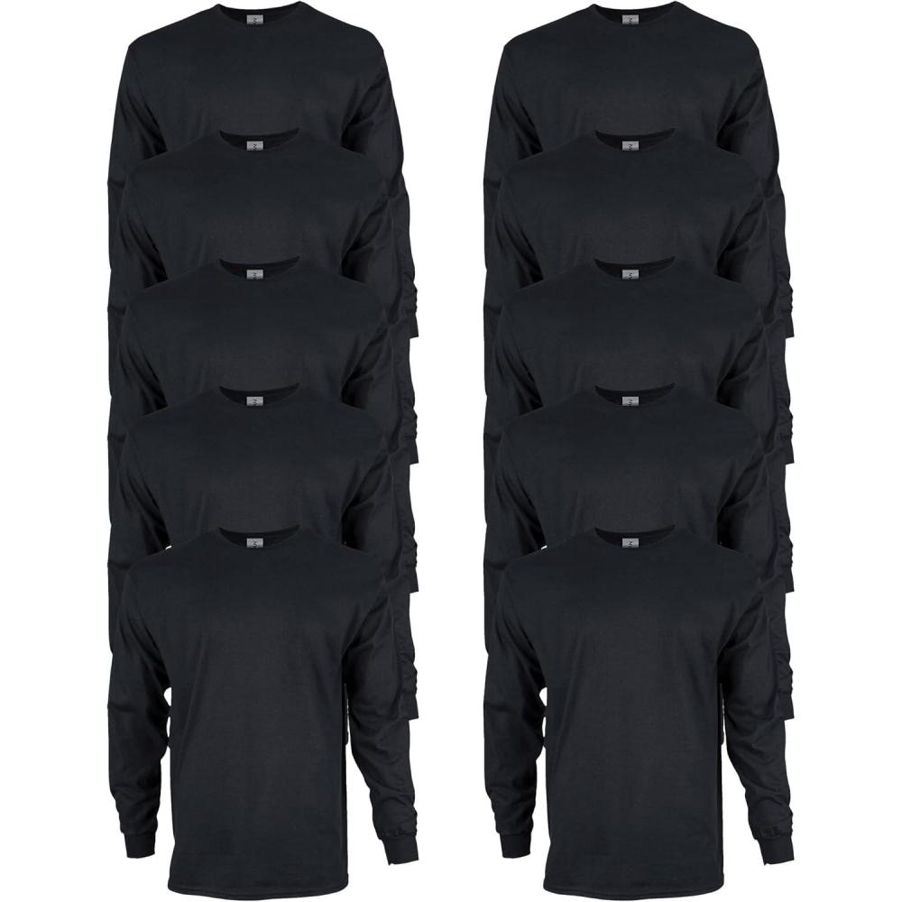 Gildan Adult Ultra Cotton Long Sleeve T-Shirt, Style G2400, Multipack(Black (10-pack))