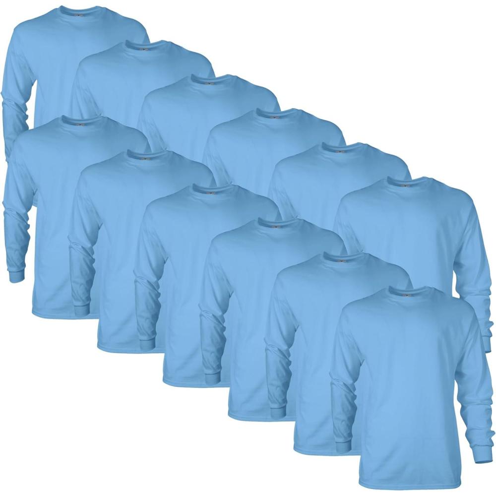 Gildan Adult Ultra Cotton Long Sleeve T-Shirt, Style G2400, Multipack(Carolina Blue (12-pack))