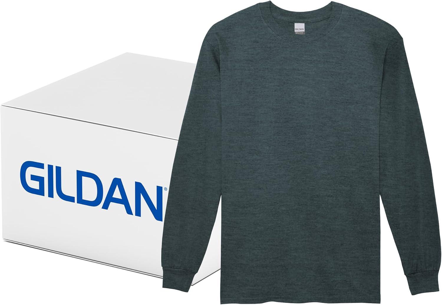 Gildan Adult Ultra Cotton Long Sleeve T-Shirt, Style G2400, Multipack(Dark Heather (36-pack))