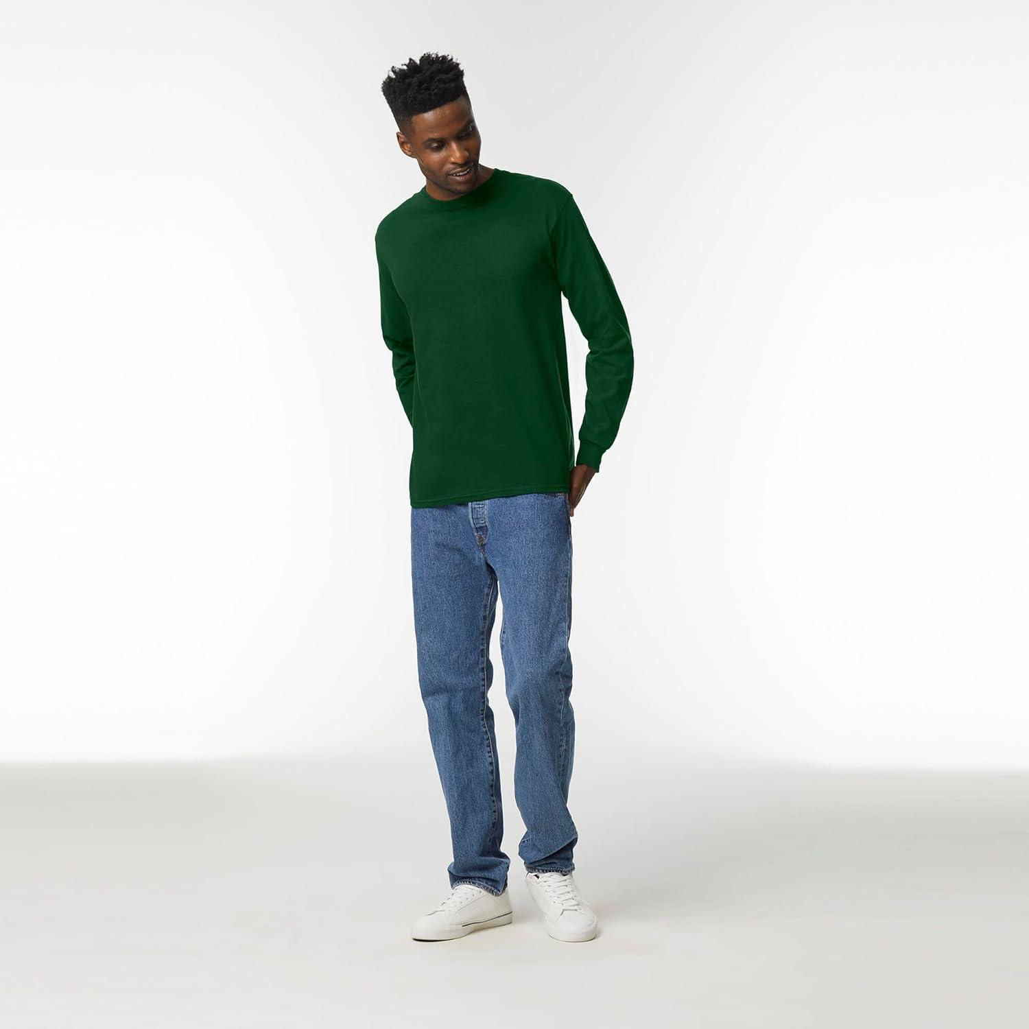 Gildan Adult Ultra Cotton Long Sleeve T-Shirt, Style G2400, Multipack(Forest Green (12-pack))