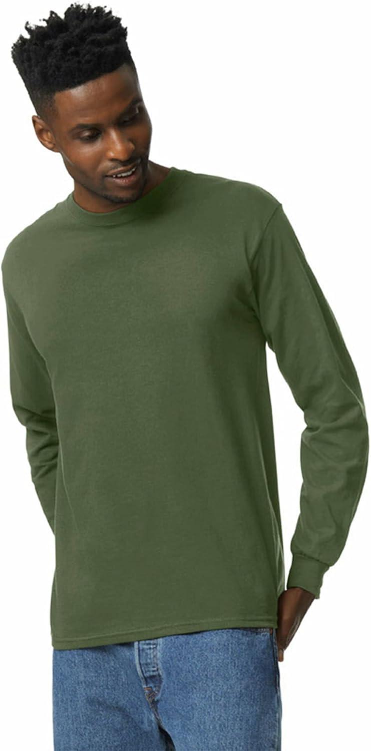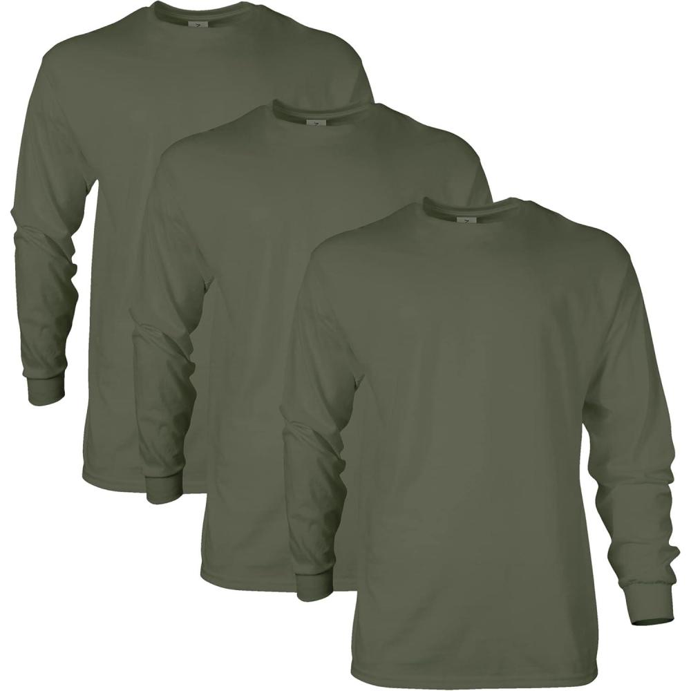 Gildan Adult Ultra Cotton Long Sleeve T-Shirt, Style G2400, Multipack(Military Green (3-pack))