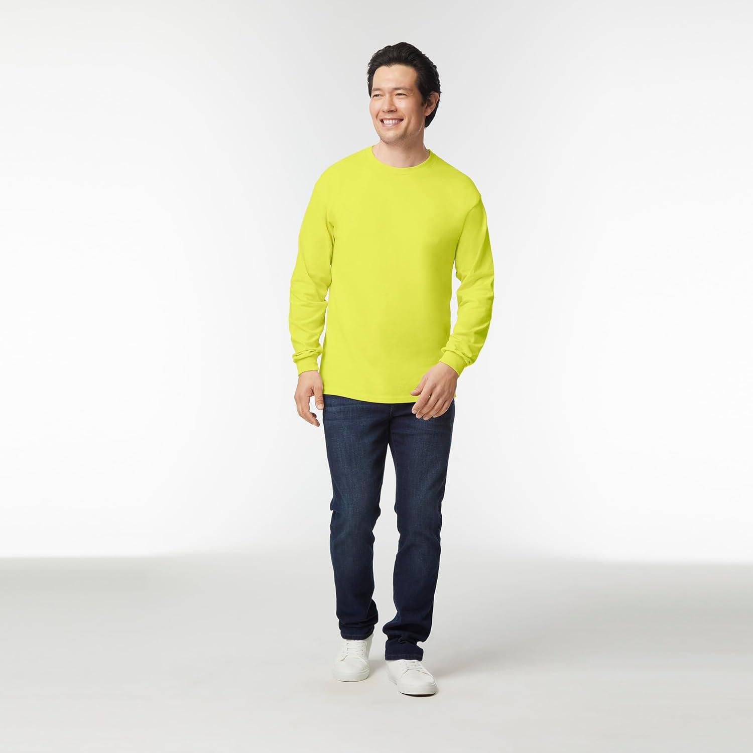 Gildan Adult Ultra Cotton Long Sleeve T-Shirt, Style G2400, Multipack(Safety Green (10-pack))