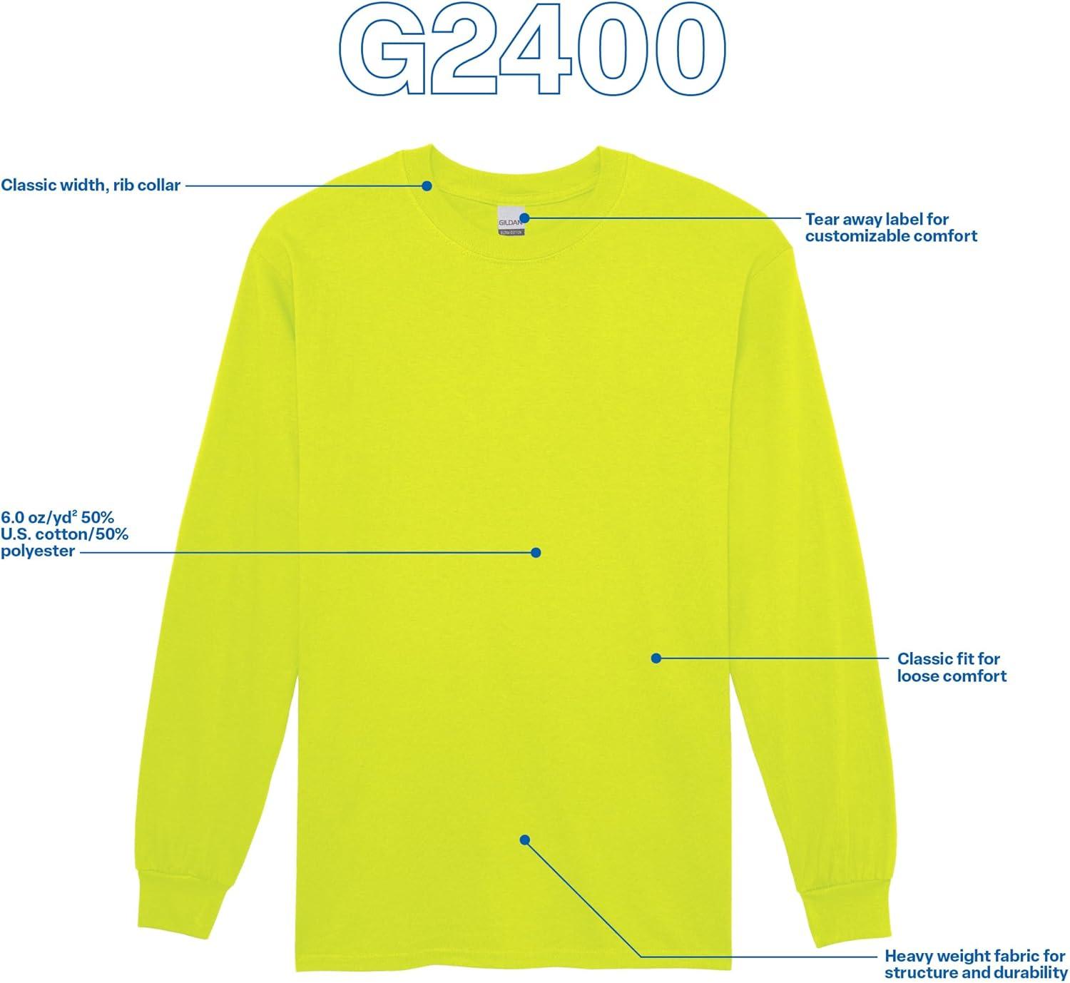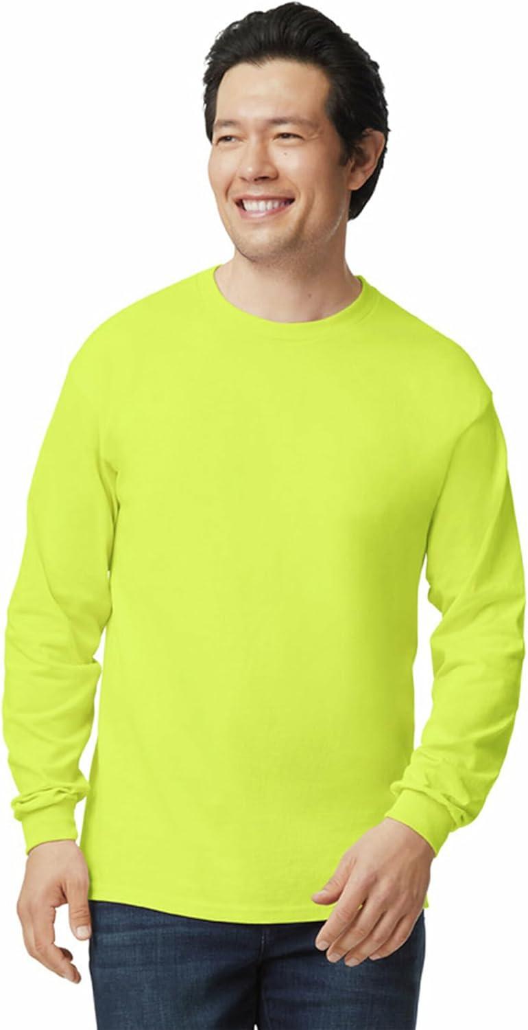 Gildan Adult Ultra Cotton Long Sleeve T-Shirt, Style G2400, Multipack(Safety Green (2-pack))