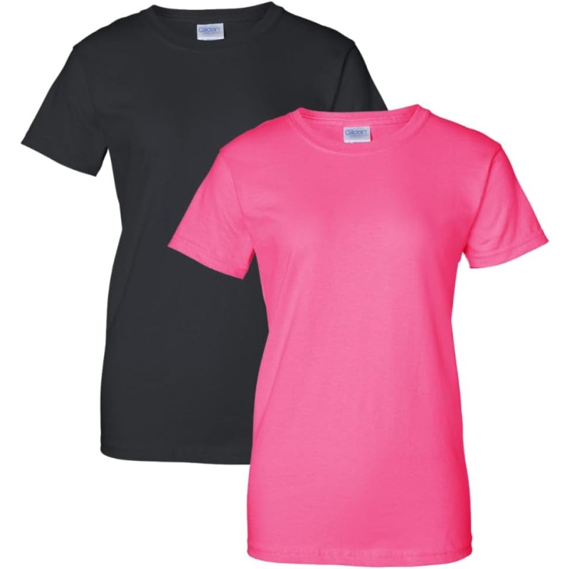 Gildan Women’s Heavy Cotton T-Shirt, Style G5000L, 2-Pack((Black/Safety Pink))